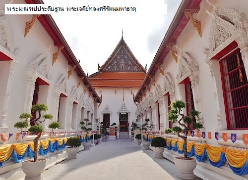 - “พระเจดีย์ทองศรีรัตนมหาธาตุ” เป็นเจดีย์ สี่เหลี่ยมจัตุรัส ย่อมุมไม้สิบสอง อยู่บนบุษบก ส่วนบนบรรจุ พระบรมสารีริกธาตุ และส่วนล่าง บรรจุพระบรมอัฐิ พระมหากษัตริย์ และพระบรมวงศ์
